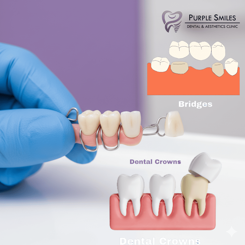 Crowns and bridges are dental restorations that replace missing teeth, restoring function and appearance.