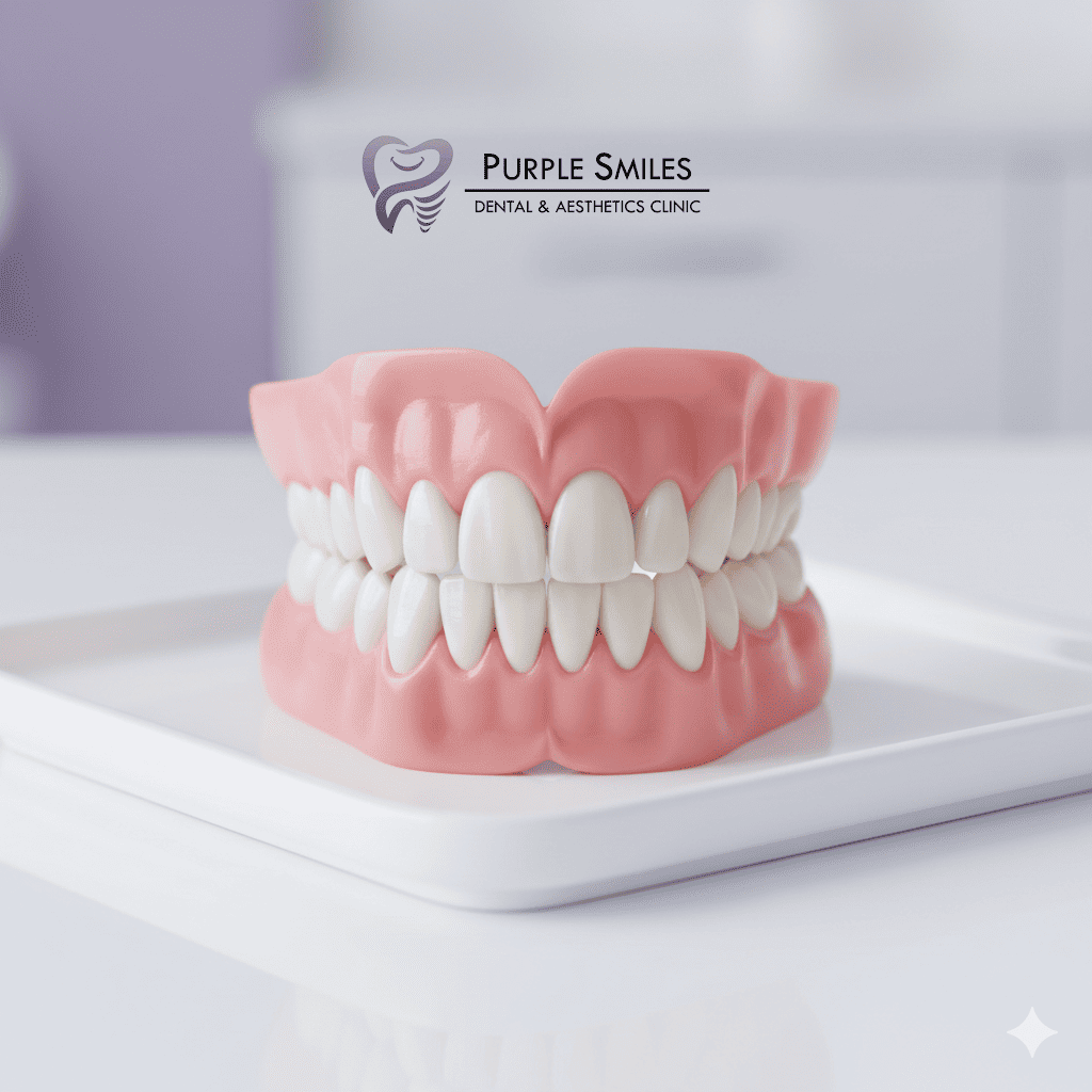 Dentures are removable dental appliances that replace missing teeth, providing comfort and improved oral function.