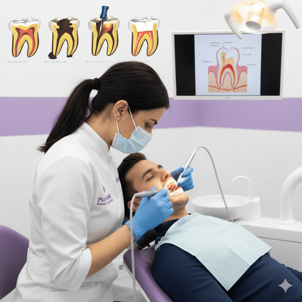 Root canal treatment removes infected tissue from inside a tooth, alleviating pain and preserving its function.